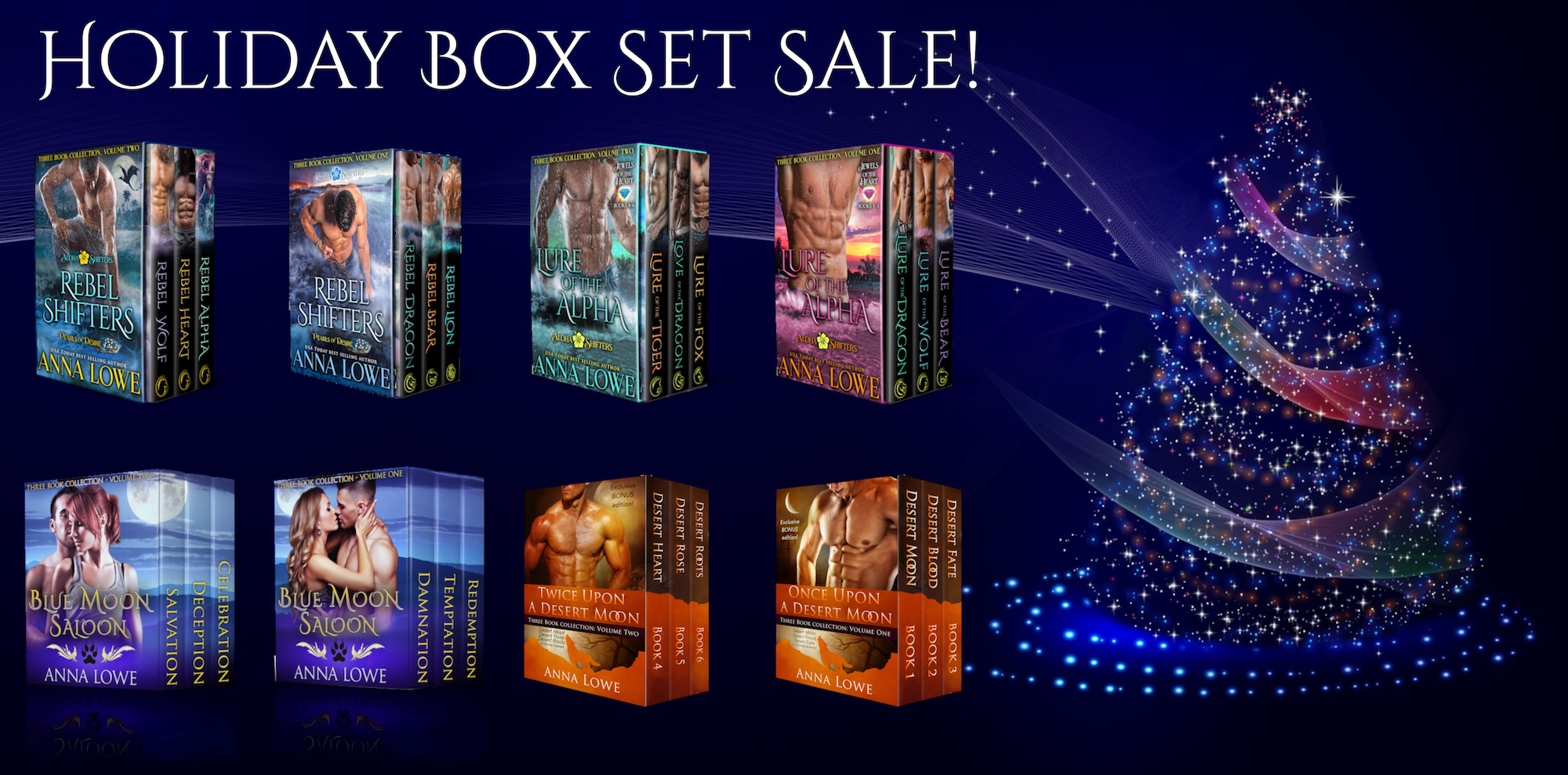 To celebrate the holidays, I’m slashing the price of my box sets from $9.99 to only $4.99 (US prices, with similar discounts in UK/CA/AU)! Each bundle contains three great shifter romances & most include bonus epilogues so you can follow up your favorite couples’ happily ever afters. Grab these incredible deals before the sale ends on December 9, 2025! (starting date is Dec. 1)